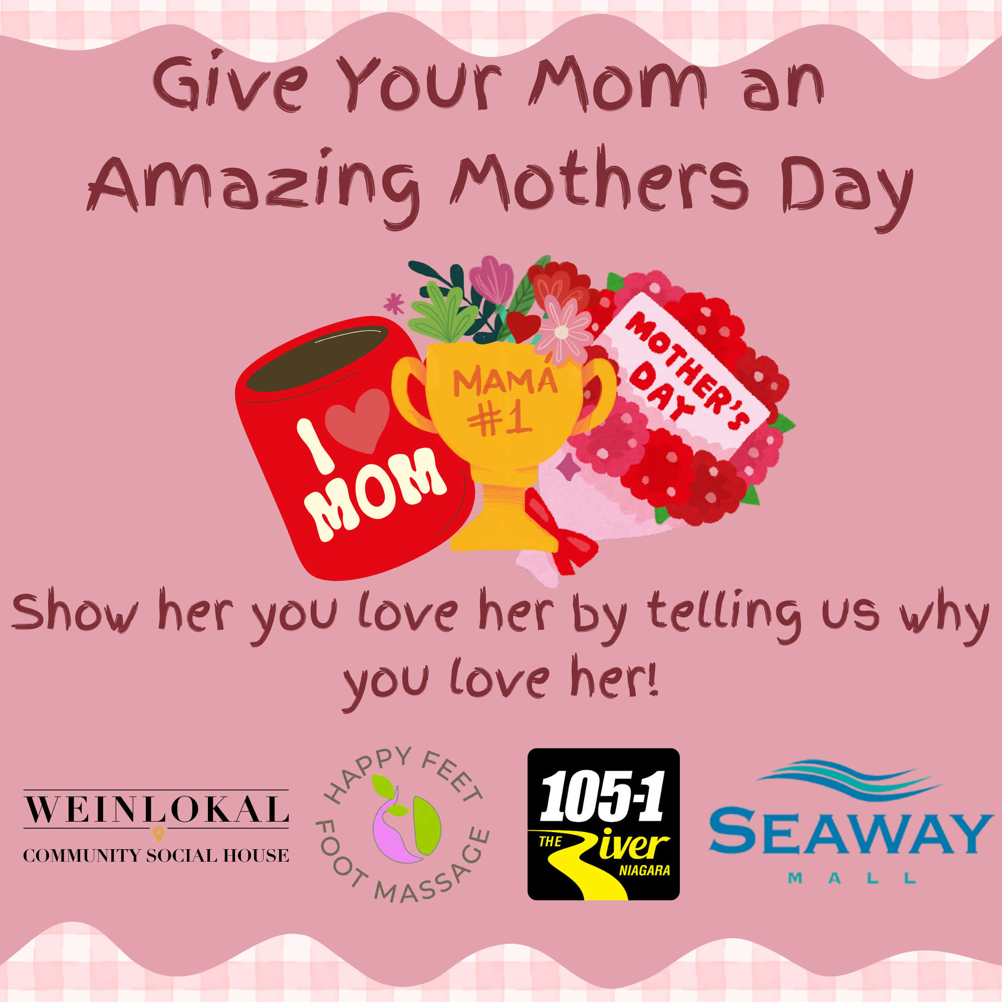 You love your mom, and you want to give her the best Mothers Day possible! 105-1 The River, Happy Feet Foot Massage, Weinlokal, and the Seaway Mall are here to help!